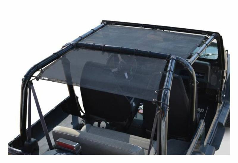 The Steinjager Teddy Top Solar Screen Cover easily installs in minutes with the use of the supplied bungee balls. There are cut-outs in the top to allow you to leave this cover on even when you have your factory top installed. Covers the front seats only.