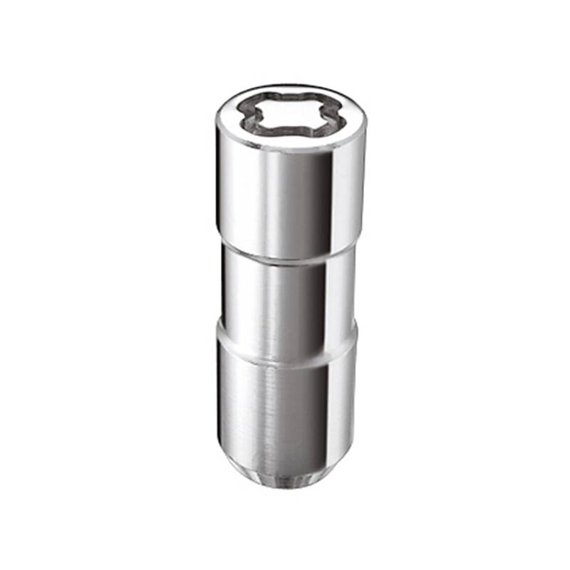 9/16-18 Chrome Cone Seat Exposed Style Wheel Locks- 2.50 OAL Protecting the world's finest wheels and tires from theft since 1964.; McGard manufactures wheel locks in the USA to meet or exceed O.E.M.; standards for safety and durability.; Presently, McGard is an Original Equipment wheel lock supplier to most automobile brands around the world.; These easy-to-use, one-piece wheel locks function like regular lug nuts, but require a special key tool for installation and removal.; The steel collar on the user friendly key guides the key into the lock pattern.; The collar holds the key in alignment for easy installation and removal.; The computer generated key designs allow for an infinite number of key patterns.; The extra narrow pattern groove on the lock resists the intrusion of removal tools into the pattern.; Every McGard wheel lock is fully machined from restricted chemistry steel made specifically for McGard and through-hardened for its unsurpassed level of security.; McGard's plating process includes several layers of nickel and one layer of microporous chrome producing a superior finish while protecting against rust.; This product may contain globally sourced materials/components.