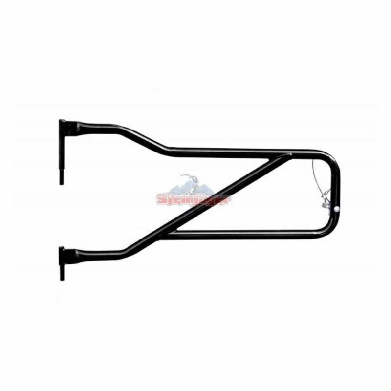 The Steinjager Tubular Trail Door's main construction is 1.25" and custom machined door hinges allow for easy switching from your stock door to the tube door. The quick release detent pin is held to the door with a weather resistant cable to ensure you don't lose your door latch pin. Please note, because of tolerances between Jeeps, you may have to slightly adjust or shim the factory striker for the latch to function smoothly. These doors accept our bolt on mirror kit but do not come with them. Includes one pair of front tube doors.