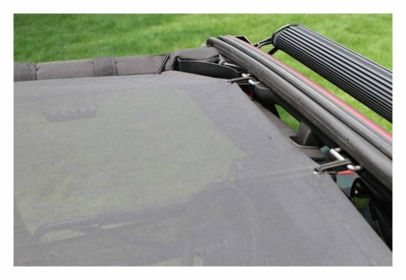 The Steinjager Teddy Top Solar Screen Cover easily installs in minutes with the use of the supplied bungee balls. There are cut-outs in the top to allow you to leave this cover on even when you have your factory top installed. The Steinjager solar Teddy Top also fits with the Steinjager Cargo Net. Covers front and rear seats.