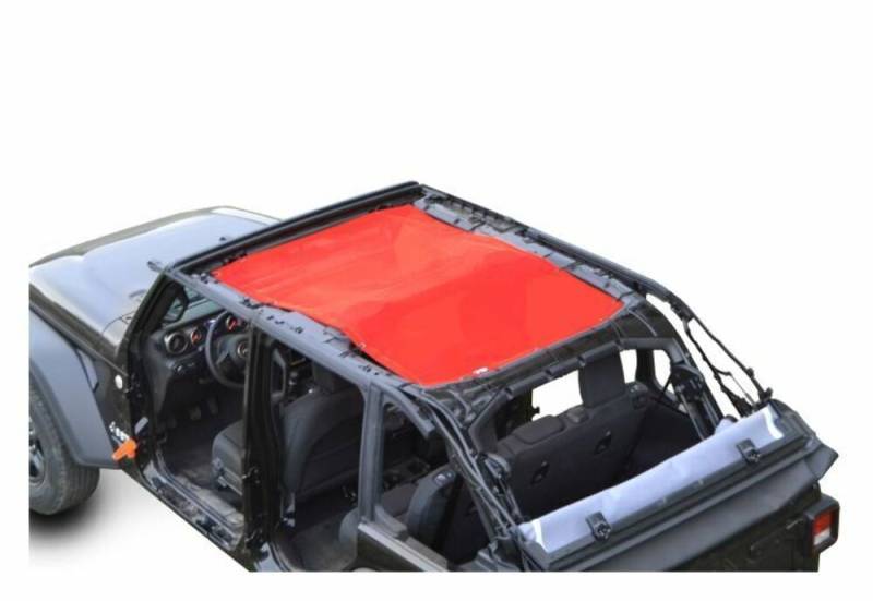 The Steinjager Teddy Top Solar Screen Cover easily installs in minutes with the use of the supplied bungee balls. There are cut-outs in the top to allow you to leave this cover on even when you have your factory top installed. The front section will need to be folded back when the Freedom Panels are installed. This Teddy Top will not work with the Sky One-Touch Power Top. Covers front and rear seats.