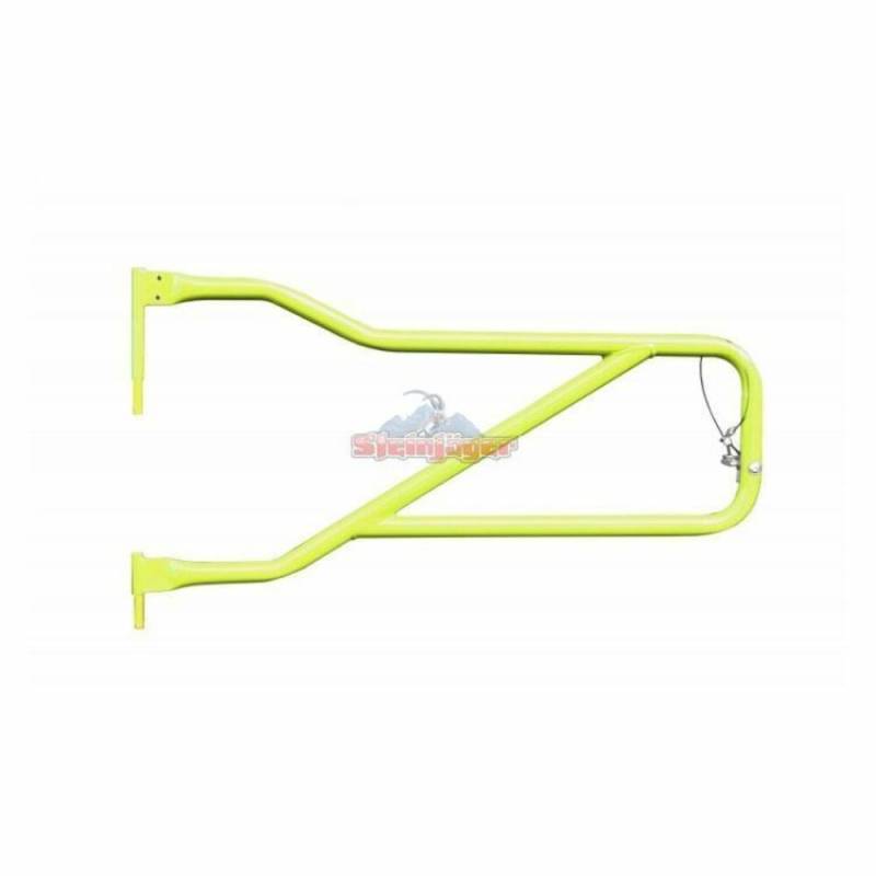 The Steinjager Tubular Trail Door's main construction is 1.25" and custom machined door hinges allow for easy switching from your stock door to the tube door. The quick release detent pin is held to the door with a weather resistant cable to ensure you don't lose your door latch pin. Please note, because of tolerances between Jeeps, you may have to slightly adjust or shim the factory striker for the latch to function smoothly. These doors accept our bolt on mirror kit but do not come with them. Includes one pair of front tube doors.