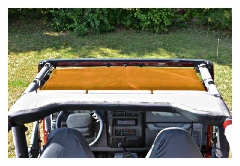 The Steinjager Teddy Top Solar Screen Cover easily installs in minutes with the use of the supplied bungee balls. There are cut-outs in the top to allow you to leave this cover on even when you have your factory top installed. Covers the front seats only.