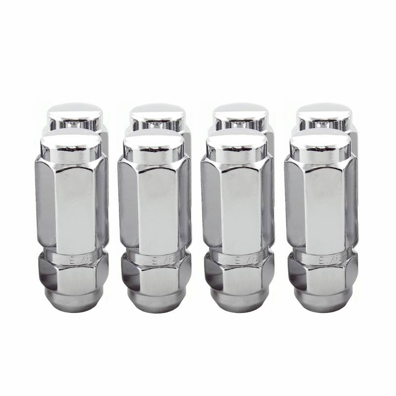9/16-18 Chrome Cone Seat Style Lug Nuts- 2.50 OAL Chrome plated lug nuts lead a tough life.; Think about it, harsh elements, nasty corrosive wheel cleaners and lead-foot drivers.; Not to mention overzealous impact guns and loose fitting lug wrenches.; This kind of treatment destroys ordinary lug nuts which turns even the best looking wheels ugly.; Tough Nuts can take the punishment and keep your wheels looking beautiful.; Tough Nuts are guaranteed for life not to rust, chip or peel.; McGard manufactures lug nuts in the USA to meet or exceed O.E.M.; standards for safety and durability.; Every lug nut is fully machined from restricted chemistry steel made specifically for McGard and through-hardened for its unsurpassed level of safety.; McGard's plating process includes several layers of nickel and one layer of microporous chrome producing a superior finish while protecting against rust.; Tough Nuts are designed and built for the real world, because life is tough.; For use with steel or aluminum wheels with exposed decorative lug nuts that are tapered at the bottom.; This product may contain globally sourced materials/components.