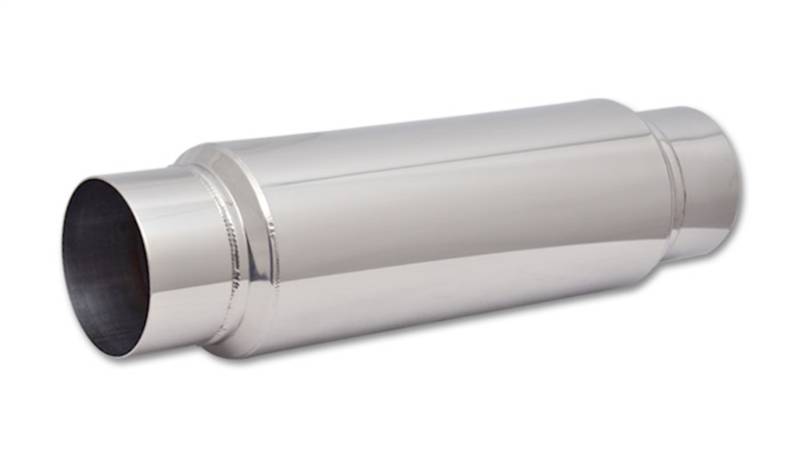 Vibrant Performance standard bottle style resonators are round bodied, densely packed with our premium multi-layered sound absorption materials, and manufactured from 304 stainless steel and CP1 Titanium for optimum durability and corrosion resistance. Vibrant Performance standard bottle style resonators have a sleek design that is optimal for easy installation and work to maximize the reduction of exhaust db levels.