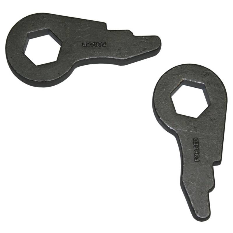 Forged torsion key kits consist of a set of re-engineered forged torsion adjustment keys. This design levels out the front of all torsion bar-equipped 2wd and 4wd trucks and SUVs without compromising the factory ride and allows for up to 33 inch tall tires. These Skyjacker torsion keys use superior manufacturing, materials and tolerances in order to increase the strength of these torsion keys.