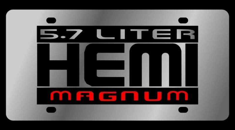 Eurosport Daytona 1428N-1 Stainless License Plate Hemi 5.7 Logo for Dodge