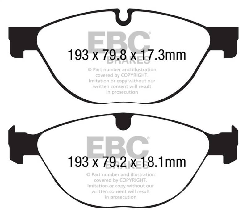 Redstuff Ceramic Low Dust Brake Pads There are TWO reasons our customers love Redstuff, First because they are the lowest dust pad we have encountered by reducing dust by 60-90-percent. Plus the minimal dust you see is very easily removed with a simple sponge wash as it contains no steel fibre particles as in ALL OTHER pads. Second they brake like an alligator right from cold (as good as Original pads or better) and just get better as they heat up.This material is a Synthetic Fiber based brake compound enhanced with ceramic particles. If you have previously tried EBC redstuff (pre-ceramic compound) this material is light years ahead. It lasts longer; it brakes better and is quieter. Being a hard wearing pad, bed-in times can be as long as 1000 miles and drivers must be patient until the pad takes up the shape of their disc (brake rotor). This is a truly impressive fast road pad for repeated heavy braking.It emits far less dust than semi-metallic pads and has been proven to stop a passenger car/sedan/sport compact/hot hatch 13 metres quicker than OEM pads from 100mph/160kph. Features EBC Brake-In surface coating which conditions rotor surface and accelerates pad bed-in. Nominal friction coefficient 0.5 with approx. 50-percent dust reduction.Most EBC Red Ceramic pads are approved to ECE R90 brake safety regulation. Lowest Dust Pad In Range High Friction Low Heat Fade Great For Fast Street And Premium Sedan Ideal European Vehicle Brake Upgrade