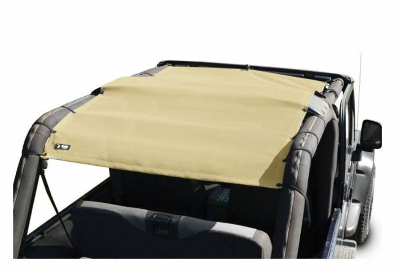 The Steinjager Teddy Top Solar Screen Cover easily installs in minutes with the use of the supplied bungee balls. There are cut-outs in the top to allow you to leave this cover on even when you have your factory top installed. Covers front and rear seats.
