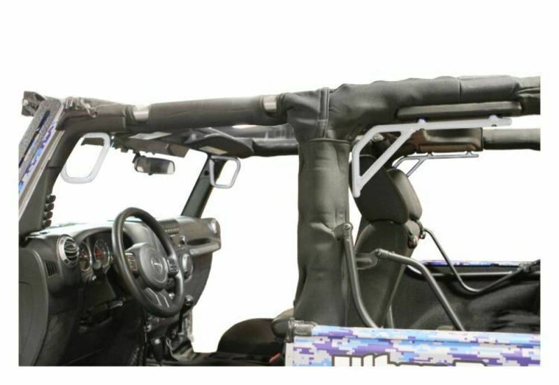 With an easy 10 minute install, you have sturdy, rigid grab handles to assist you getting in and out of your Jeep or a place to hold on to when you are on the toughest of trails. The solid bar design guarantees you years of use without any headaches. They are completely manufactured in the USA. Steinjager Grab Handles are designed to not interfere with the visors. Fornt and Rear bar set.