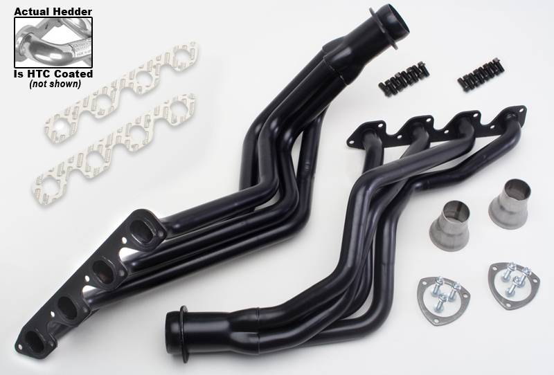 Handcrafted, Mild Steel Construction. Long Tube Header Design Provides Excellent Top-End Horsepower and Torque. Ball & Socket Collector Design requires No Gasket, and Allows For More Exhaust System Misalignment than Old School, Gasket-Style Header Collectors Includes All The Necessary Mounting Hardware, Gaskets and Reducers (exhaust adapters) Limted Lifetime Warranty On Construction, Five Year Warranty on Factory-Applied Header Coating!Details