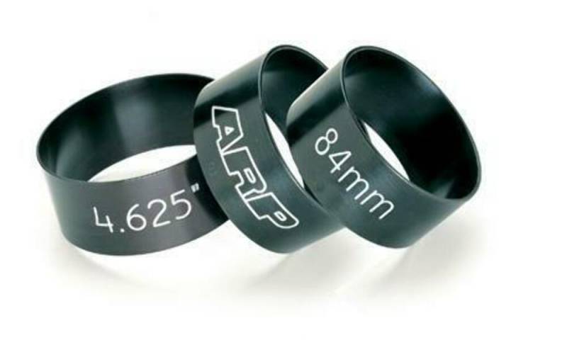 ARP's new ring compressors are CNC machined from 6061-T6 billet tube material and feature a true radius for each different bore diameter. What's more, they are relieved for wire O-rings on bottom. Type 3 anodizing is used for long life, and the bore size is prominently engraved in 3/4? high numbers for easy identification. Standard stocking sizes from 3.552? to 4.750? (SAE) and 75mm to 95.5mm (metric). The true radius design is far superior to conventional tapered? devices, and widely acclaimed by professional engine builders! This is truly the very best piston ring compressor on the market today.