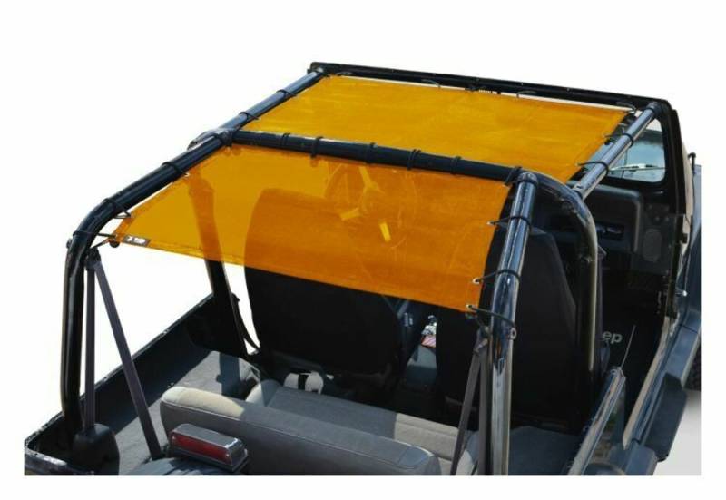 The Steinjager Teddy Top Solar Screen Cover easily installs in minutes with the use of the supplied bungee balls. There are cut-outs in the top to allow you to leave this cover on even when you have your factory top installed. Covers the front seats only.