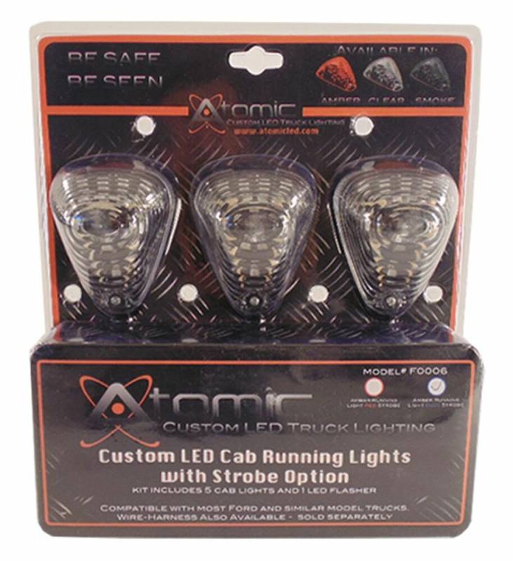 AtomicLED's Ford First Responder LED light kit. Clear lens with Amber running and Red flash on warning mode. Kit includes 5 lights and 1 LED flasher. Cab lights consist of 28 LEDs per unit with a combined total of 140 LEDs. Flasher has 6 patterns and can be switched with the sync pin that is on the flasher itself. Fits 1999-2016 Ford Super Duty models.
