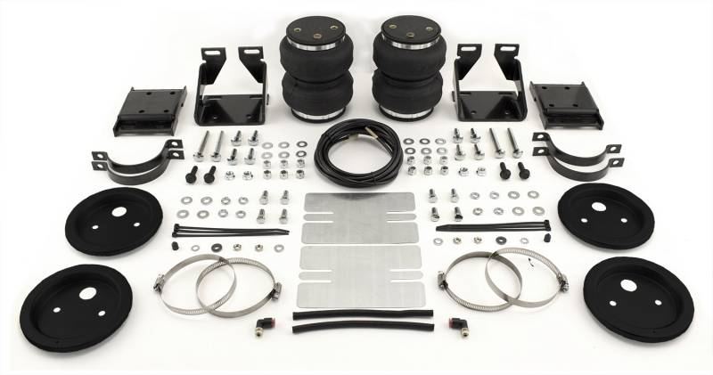 LoadLifter 5000 ULTIMATE with internal jounce bumper LoadLifter 5000 ULTIMATE adjustable air spring kits feature all of the benefits of our heaviest rated air spring with the addition of an internal jounce bumper inside the spring for the ultimate in ride comfort. Fits vehicles with in-bed hitches. Tow and haul the heaviest loads with safety and comfort with LoadLifter 5000 ULTIMATE. Works with vehicle's leaf springs to provide up to 5,000 lbs. of front load leveling capacity and keeps the vehicle riding stable, level and comfortable whether loaded or unloaded. Fully adjustable from 5 to 100 PSI. The closed-cell urethane foam jounce bumper inside the ULTIMATE air springs provide a cushion of air that absorbs shock, eliminates harsh jarring on rough roads and protects vehicles carrying heavy loads. Never bottom out again with the ULTIMATE! LoadLifter 5000 ULTIMATE air springs are maintenance free! Safely run with zero air pressure because of the internal jounce bumper. Replaces factory jounce bumper that is sometimes removed when adding air springs. Includes industry-exclusive 60 Day No Questions Money Back Guarantee! Includes the most comprehensive Lifetime Warranty in the industry---covers all kit contents including brackets, fittings and air line. Air springs are built like a tire and are reinforced by durable, 2-ply fabric for maximum strength. Exclusive upper and lower roll plates included. Protect the springs from sharp edges, such as brackets or the frame. The kit includes 2 air springs, brackets, air lines, Schrader valve and all of the hardware needed for installation. Includes fully illustrated instruction manual. Add an Air Lift on-board air compressor system to inflate and deflate air springs with the touch of a button from inside or outside of the vehicle. Air Lift is a 3rd generation family owned company that has been manufacturing the highest quality suspension products in Lansing, MI. Exclusive internal jounce bumper inside springs absorbs shock Up to 5,000 lbs. of load-leveling capacity (Note: Do not exceed vehicle's GVWR) Maintenance free! Run safely with zero air pressure. Eliminates harsh jarring on rough roads Air adjustable from 5 to 100 PSI