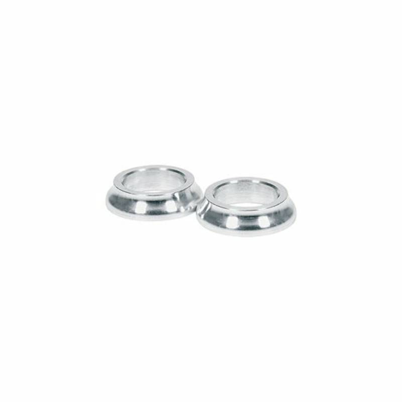 Steel and aluminum tapered spacers make shock or radius rod mounting neat and strong, and help prevent binding. Package of 2.