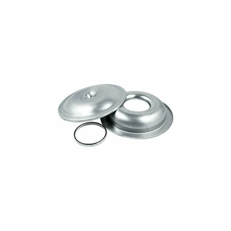 Low profile, spun aluminum air cleaners have 5-1/8" necks and O-ring spacers for a positive seal. Plain aluminum or black powder coated tops are available. Offset bases clear HEI distributors. Elements sold separately.
