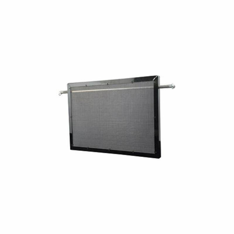 Commonly used on dirt late models, universal shaker screen is mounted in front of the radiator on most dirt cars. Unit includes black powder coated aluminum frame, screen, 1/2" x 32" cross rod, springs and retaining clips. Frame dimensions are 17" tall and 25" wide.