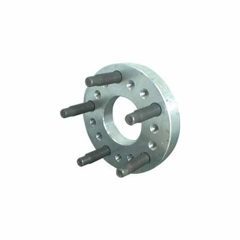 Adapter bolts to stock 5x4-1/2" or 5x4-3/4" bolt circle hub and adapts to 5x5" bolt circle pattern wheel. Fitted with 5/8"-11 coarse thread studs. 1" thick.