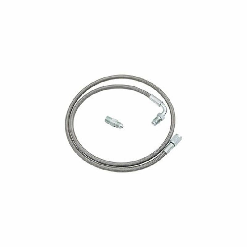 Designed to connect clutch master cylinder to hydraulic throw-out bearing or directly to transmissions with internal clutches. Pre-assembled braided steel hose assemblies have #3 lines and are fitted with one -3 AN straight end and one 3/16" inverted flare 90 degree hard line end. Also includes one 1/8" male to -3 AN fitting (ALL50000).