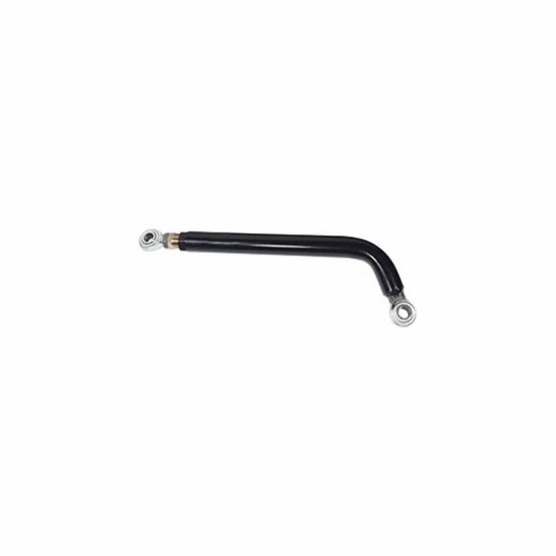 Bars are formed from 1-1/2" steel tubing and mount to the pinion rather than the axle tube to maintain adequate driveshaft clearance. J-bars have 3/4" rods ends and allow up to 2" of adjustment. The 18-1/2" J-bar has an adjustment range of 17-1/2" to 19-1/2", while the 20-1/2" bar may be adjusted from 19-1/2" to 21-1/2". Bars have 4" of drop.