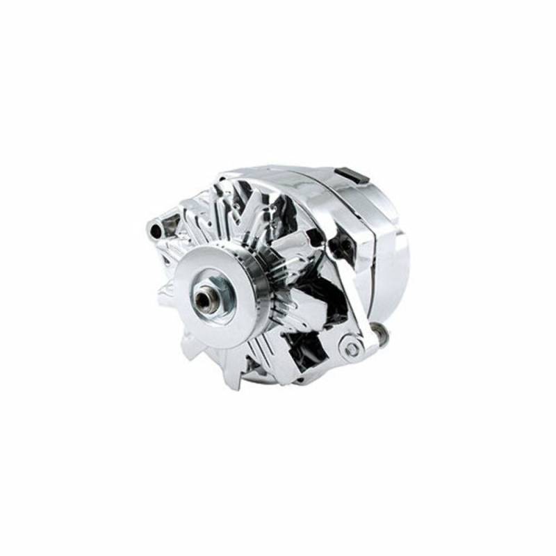 Chrome finish, single wire GM alternator with aluminum housing has a 100 amp capacity.