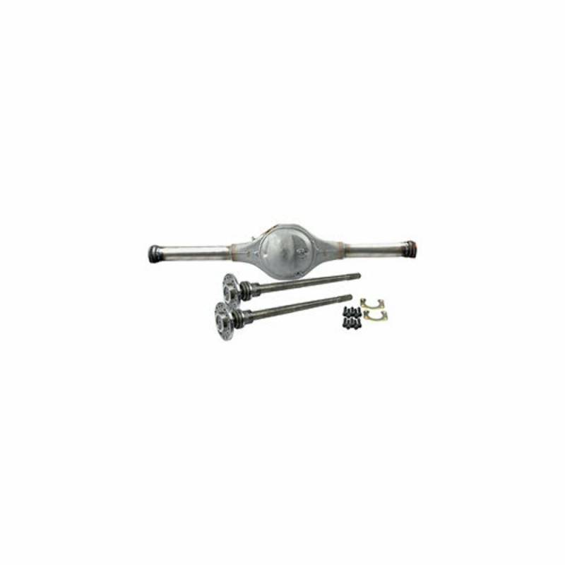 Housing kit fits the 1978-88 GM intermediate chassis. Replace a stock GM 7.5" rear-end with the much stronger Ford 9" style. Kit includes a select used center section, new axle tubes with large bearing late Ford/Torino style-ends, 31-spline axles with bearings and seals installed, drilled for 1/2"-20 studs with 5 on 4-1/2" or 5 on 4-3/4" bolt circles. Choose from two widths, 58" and 60" axle flange to axle flange.