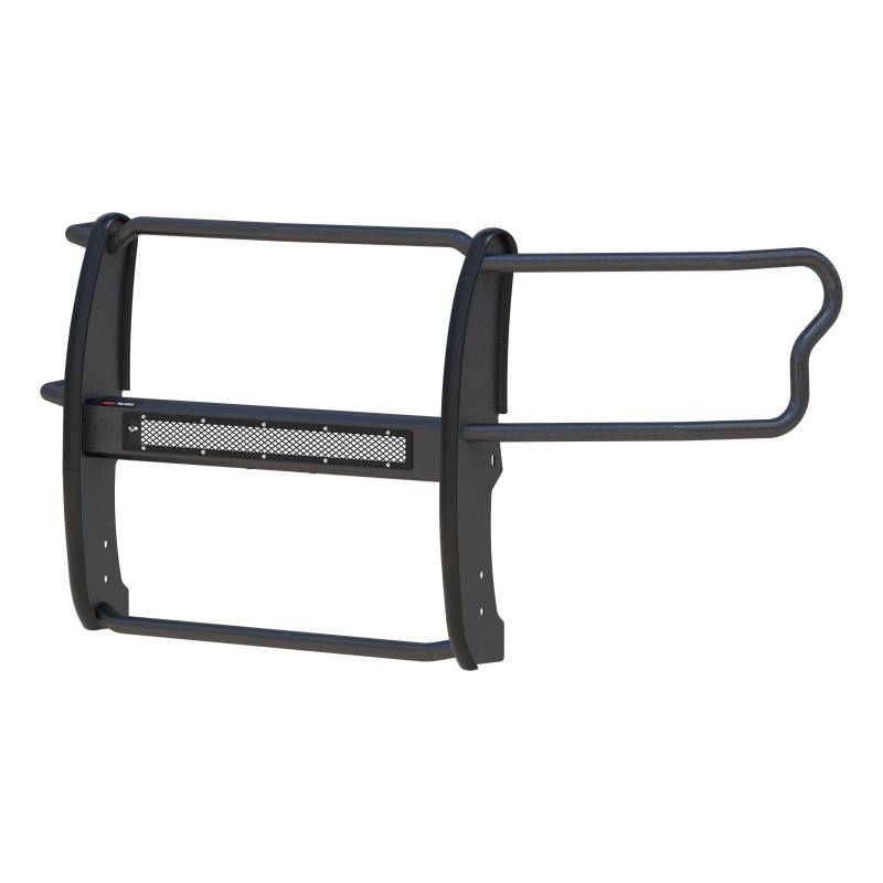 Pro Series Black Steel Grille Guard, Select Ford F-150 The ARIES Pro Series grille guard is unlike any other grille guard or brush guard on the road today because of its patented center crossbar. The ARIES Pro Series grille guard has a unique center crossbar that is able to house an LED light bar, allowing you to truly set your truck apart from all others. Rather than using a set of light clips or forcing you to drill holes into the frame, the aerodynamic crossbar of the Pro Series grille guard is the light bar housing itself. It uses a 30" slotted channel bracket to accept one or more single-row light bars (light bars not included; some 30" light bars may not fit the channel bracket). The crossbar mount can also articulate, allowing you to position the light beam at any angle you prefer. Integrating the channel mount into the crossbar housing also keeps the light bar protected from the elements. To further stylize your truck, the Pro Series grille guard also comes with an interchangeable grille guard cover plate. Included with each grille guard is a black mesh cover plate that easily bolts on and provides added security for your aftermarket lights. The mesh cover plate can be swapped out with other cover plate options, including five different styles and two finishes. Solid construction should be an essential feature of any grille guard, and the Pro Series grille guard is more than qualified. It has a one-piece design of 1/4" thick welded plates and 1-1/2" mandrel-bent carbon steel tubing. We also finish each Pro Series grille guard in a highly durable, dual-layer E-coat and textured black powder coat, giving it resilience to rust and scratches. This unique finish also helps hide minor scratches and grime to maintain a clean look. ARIES Pro Series grille guards are made vehicle-specific for seamless integration with the factory bumper and an easy, no-drill installation. This grille guard fits select model years of the Ford F-150 (see application info to verify fitment). Patented crossbar houses a single-row LED light bar (light bar not included) Interchangeable cover plate protects light bar and offers easy customization Channel-style bracket accepts one or multiple light bars Articulating bracket allows light to be mounted at a custom angle Textured black powder coat easily hides minor scratches and grime