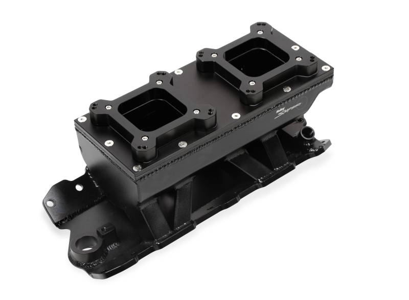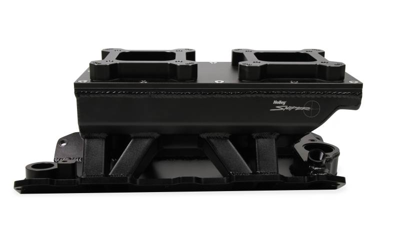 Each manifold is ready to bolt-on out of the box (including a high-flow fuel rail kit for EFI versions). These manifolds are precision fixtured and welded for a perfect fit and maximum structural integrity.\nHolley Sniper continues to push the aftermarket by introducing fabricated carbureted and EFI intake manifolds for GM Small Block and LS along with Ford 4.6 Modular 3-valve and 5.0L Coyote engines. These performance sheet metal intakes are great looking and an excellent value compared to other fabricated intake manifolds.