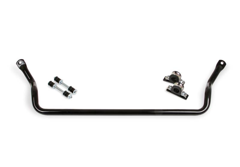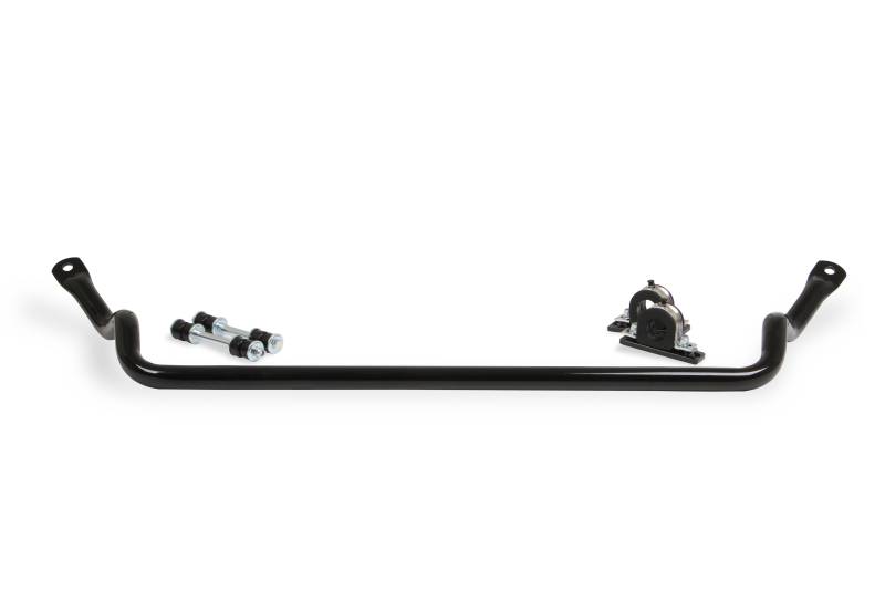 The REKUDO Front Sway Bar for your 1970-1981 GM F-body is suitable for street driving, autocross and weekend warrior track days. The 1-3/8" (1.375") diameter cuts body roll and stiffens up the front suspension. Polyurethane frame and end link bushings are used as an upgrade from rubber offering superior durability and function. Polyurethane bushings allow the bar to come into action immediately unlike rubber bushings that must compress first before the bar becomes functional. No need for concerns about polyurethane squeaking, the frame bushings are easily greaseable via Zerk fittings in the bushing frame brackets.\nThis cold rolled carbon steel bar has a .156" wall thickness and is tubular to reduce weight. It comes in a black powder coated finish and bolts in place of a factory Chevy Camaro or Pontiac Firebird anti-roll (stabilizer) bar. Installation hardware is included.