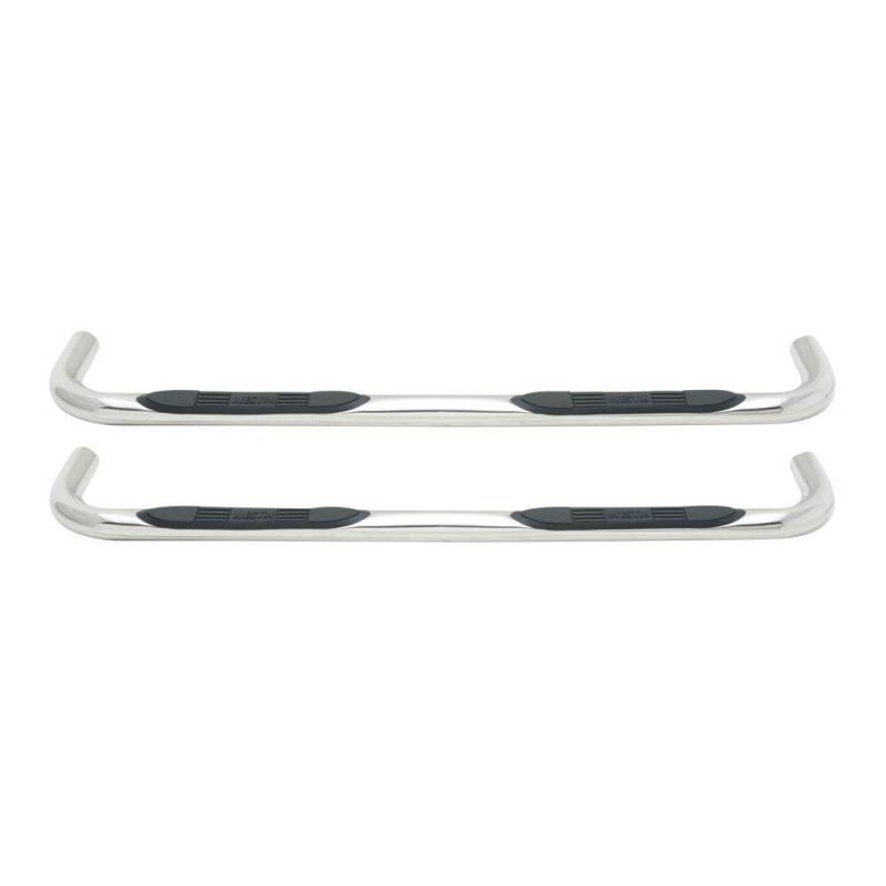 E-Series 3 Nerf Step Bars Westin(TM) E-Series Nerf Bars are made of 3in. diameter round tubing and are vehicle specific designs. Step design and mounting technique varies by application (mounting kit included). They feature recessed area mounted step pads unique to E-Series Nerf Bars feature the Westin(TM) brand name and are UV resistant. Mount kit included 3" round step bars Protects vehicle rocker panels from potential damage Vehicle specific applications Injection molded polymer step pad