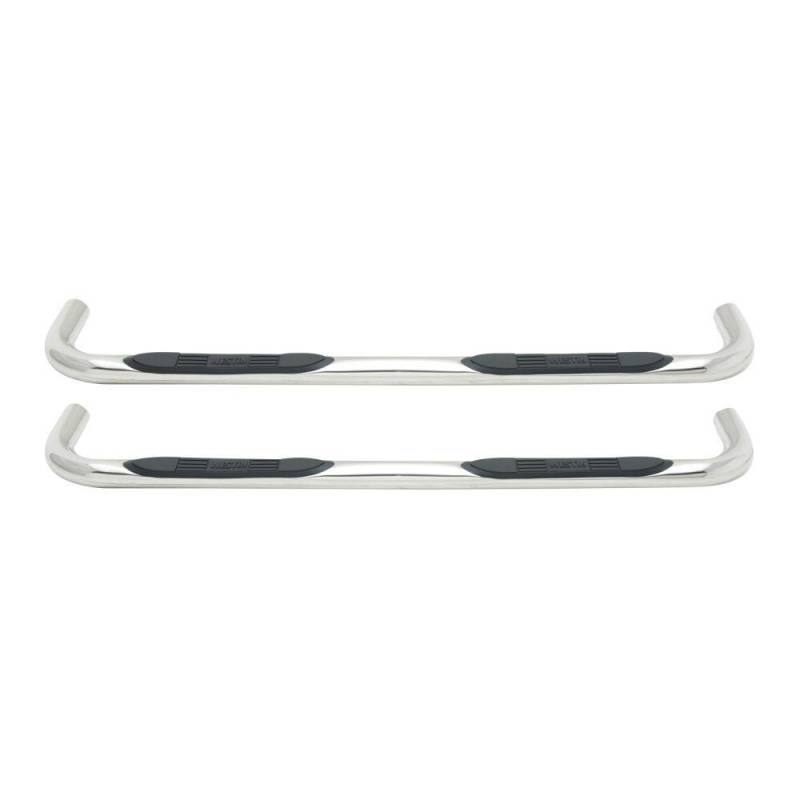 E-Series 3 Nerf Step Bars Westin(TM) E-Series Nerf Bars are made of 3in. diameter round tubing and are vehicle specific designs. Step design and mounting technique varies by application (mounting kit included). They feature recessed area mounted step pads unique to E-Series Nerf Bars feature the Westin(TM) brand name and are UV resistant. Mount kit included 3" round step bars Protects vehicle rocker panels from potential damage Vehicle specific applications Injection molded polymer step pad