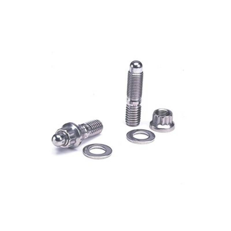 ARP manufactures a variety of premium grade bolt and stud kits to facilitate installation of exhaust headers including the popular stainless stud kit with 12-point nuts. The Stainless 300 material is not affected by corrosion or extreme heat, making it ideal for the application. What's more, the compact 12-point nut lets you easily slip a socket close to the pipe. Each ARP accessory stud or bolt kit includes the specific number of parts for your application, plus premium-quality washers and hex or 12-point nuts, as required. Studs are manufactured with a unique nut-starter nose that helps prevent cross-threading. Studs and bolts come either black oxide chrome moly or Stainless 300. Both are nominally rated at 170,000 psi tensile strength; substantially stronger than Grade 8 hardware. Specially drilled NASCAR? models are available for those who wish to safety wire their header bolts to prevent loosening.