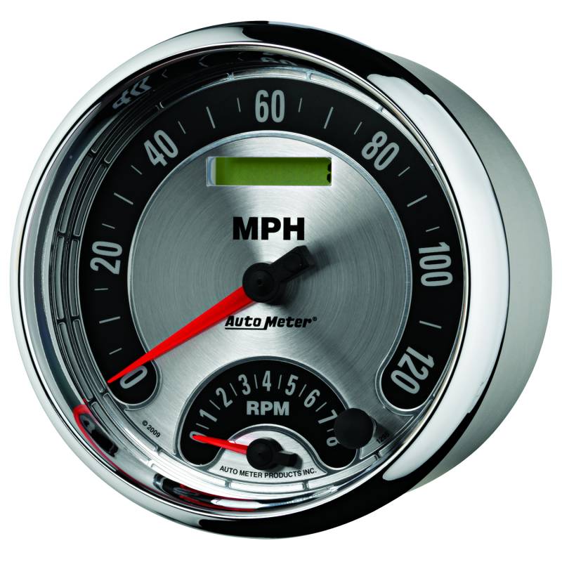 GAUGE, TACH/SPEEDO, 5", 160MPH & 8K RPM, ELEC. PROGRAM., AMER. MUSCLE Save Space On Your Dash And Provide A Clean Look With Autometers Electronic Tach/Speedo Combo. Taking The Highly Precise Circuits From The Individual Speedometer And Tach And Combining Them Into One Unit Gives You The Accuracy And The Response Time You Need And The Convenience Of A One Piece Solution. Compatible With Nearly Any Factory Speed Sender And 1-12 Cylinder Applications, This Unit Is Simple To Calibrate And Designed With The Type Of Durability You Expect In An Autometer Gauge. Autometers Gps Speed Sender Is Also Compatible For An Easy, Plug And Play Solution. Modern white LED through-the-dial lighting provides clear visibility during nighttime use Gauge kit includes mounting hardware, and installation instructions Tachometer is compatible with 0.5 - 6 pulse ignition signals (1-12 cylinder engines) with points, electronic, and most 12V high-performance racing ignitions. Reprogram at any time to accommodate changes in gear ratio or wheel and tire combination with a simple push button, 2 mile drive calibration.