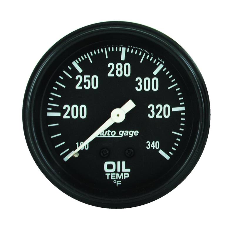 GAUGE, OIL TEMPERATURE, 2 5/8" 100-340?F, MECHANICAL, BLACK, AUTOGAGE Getting Great Performance Or Saving Money Doesnt Have To Be Choice. Engineered By Autometer In Sycamore, Il, The Auto Gage Line Of Instruments Provide The Best Bang For The Buck Performance In The Industry. For A Fast Street Car Or A Weekend Racer, Auto Gage Provides Levels Of Accuracy And Durability Unheard Of In The Price Category. With Countless Wins In Magazine Comparison Tests, The Best Value In Gauges Comes From Exactly The Place You" D Expect It To. Autometer. Includes snap-on chrome bezel Includes bulb and socket assembly with red and green bulb covers