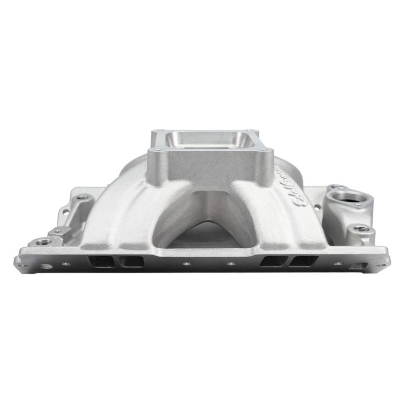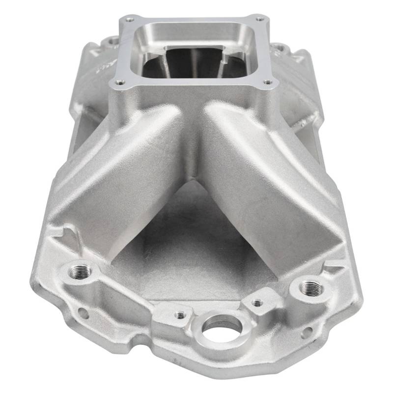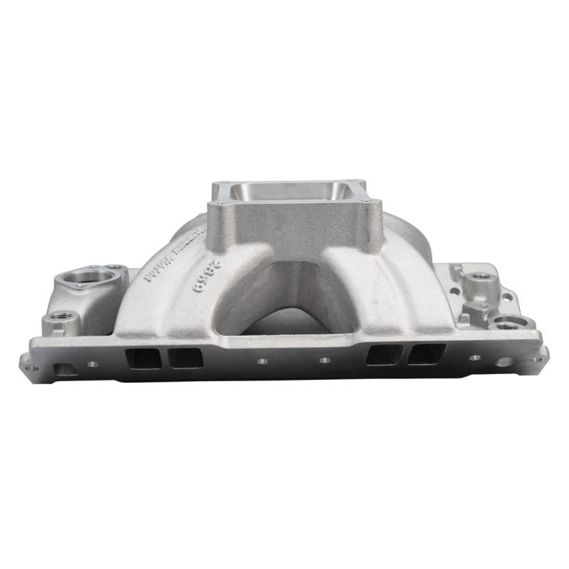 Victor 15-18 Degree Intake Manifold Small-Block Chevy Edelbrock part #2859 Victor Glidden intake manifold is for all-out nitrous-assisted drag race applications. Designed with noted drag racer Billy Glidden, it features intake runners with a large cross-section area of 3.2 square-inches for maximum high-end horsepower in engines operating from 5000 to 8500 rpm with GM or Edelbrock 18-degree heads. Carb mount flange and plenum are machined for 4500 Series carburetors and require port matching and blending prior to use. The Edelbrock Victor Glidden is a single-plane, high-rise intake designed for maximum race-winning power at higher engine speeds.