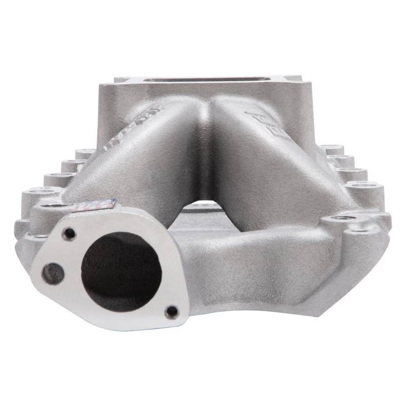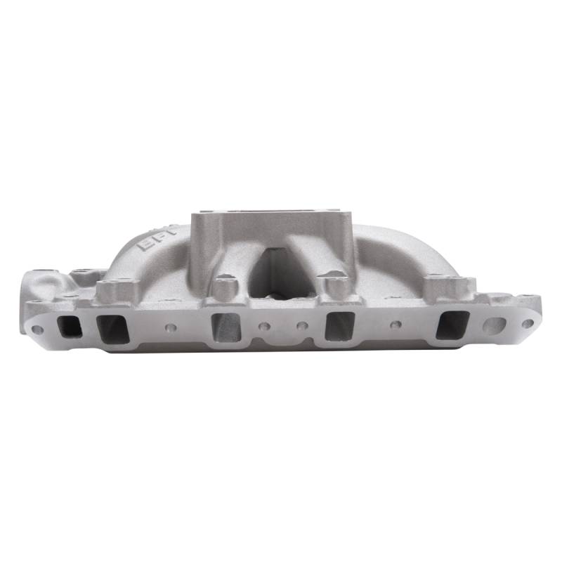 Victor Jr. Small Block Ford 302 EFI Intake Manifold Edelbrock part #29215 Victor Jr. 302 EFI intake manifold is designed for use with Ford 289-302 competition engines using modified stock cast iron or aftermarket Windsor-style cylinder heads such as Edelbrock #60259 and #77169 or equivalent. Victor Jr. EFI also features bosses for rear water crossover. Port exit size at cylinder head is 1.08" x 1.90" with extra material to accommodate a 1.18" x 2.10" opening. The Edelbrock Victor Jr. #29215 EFI is a single-plane, high-rise intake designed for maximum race-winning power at higher engine speeds.