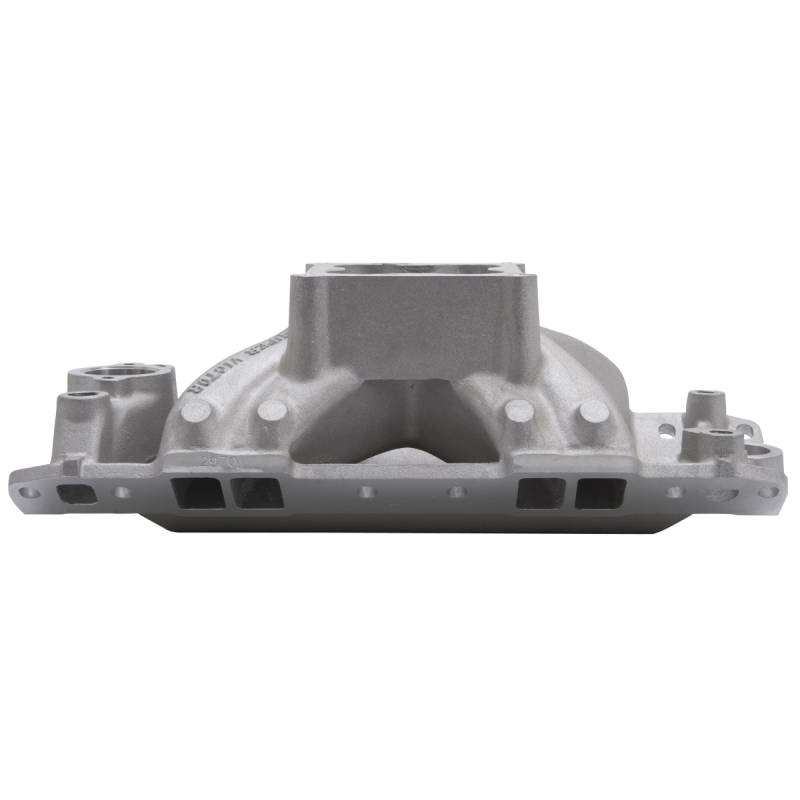 Super Victor 4500 23 Degree Intake Manifold Small-Block Chevy Edelbrock part #2970 Super Victor 4500 23 degree standard port location intake manifold is designed for small-block Chevys with 4500 Series carburetors and 23 degree heads. This intake manifold has a large runner cross-sectional area (3.2 square inches) and a highly efficient cloverleaf plenum design. In dyno tests on a 358-inch small-block, #2970 made 10 horsepower more than the best competitor's manifold!