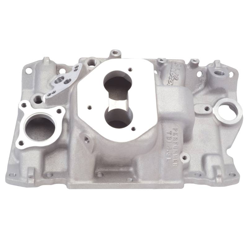 Performer Small-Block Chevy 4.3L T.B.I. V6 Intake Manifold Edelbrock part #3713 Performer 4.3L T.B.I V6 intake manifold is designed for street 1987-94 Chevrolet 4.3L V6 with factory Throttle Body Injection. The Performer 4.3L intake manifold provides outstanding throttle response and torque increases from idle to 5500 rpm. Accepts all factory accessories/hardware. Throttle body unit remains in stock location. Not for 1994 and later engines equipped with flash memory computer. Flash memory ECM is located underhood. A computer chip is available at no charge. Return postage paid card comes with the manifold to receive the chip.