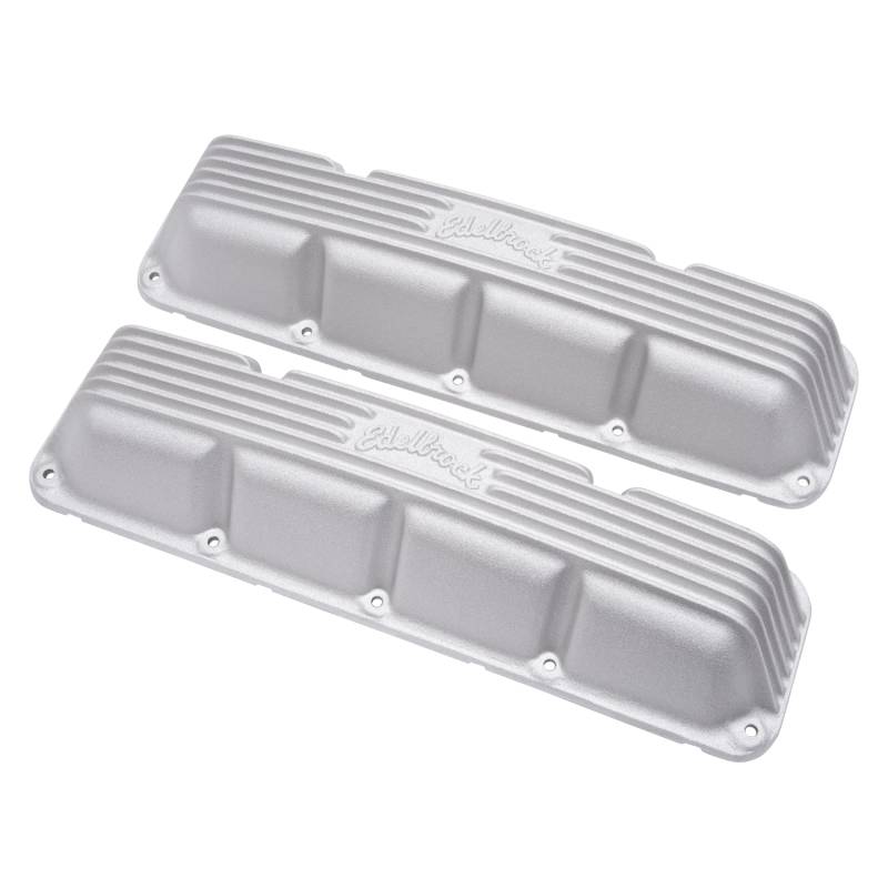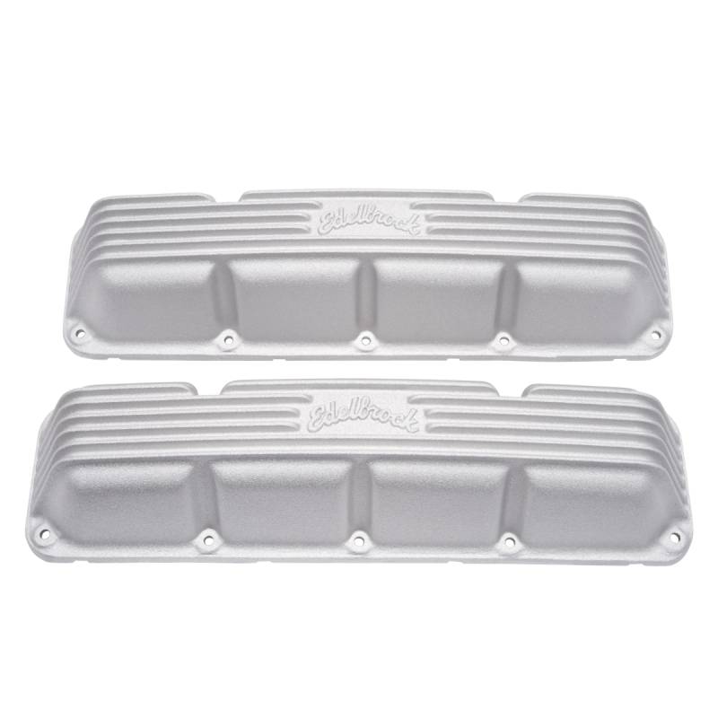 Edelbrock part #41999 Classic Series Valve Covers are designed for AMC/Jeep 290-401 V8 1967-91 applications and have a Satin finish. Edelbrock first made these aluminum valve covers in the late '50s and they're still a classic. Made of heavy-gauge sand-cast aluminum, Overall height is measured from base to top at the highest point. Edelbrock classic valve covers can be machined to accept breathers if desired.