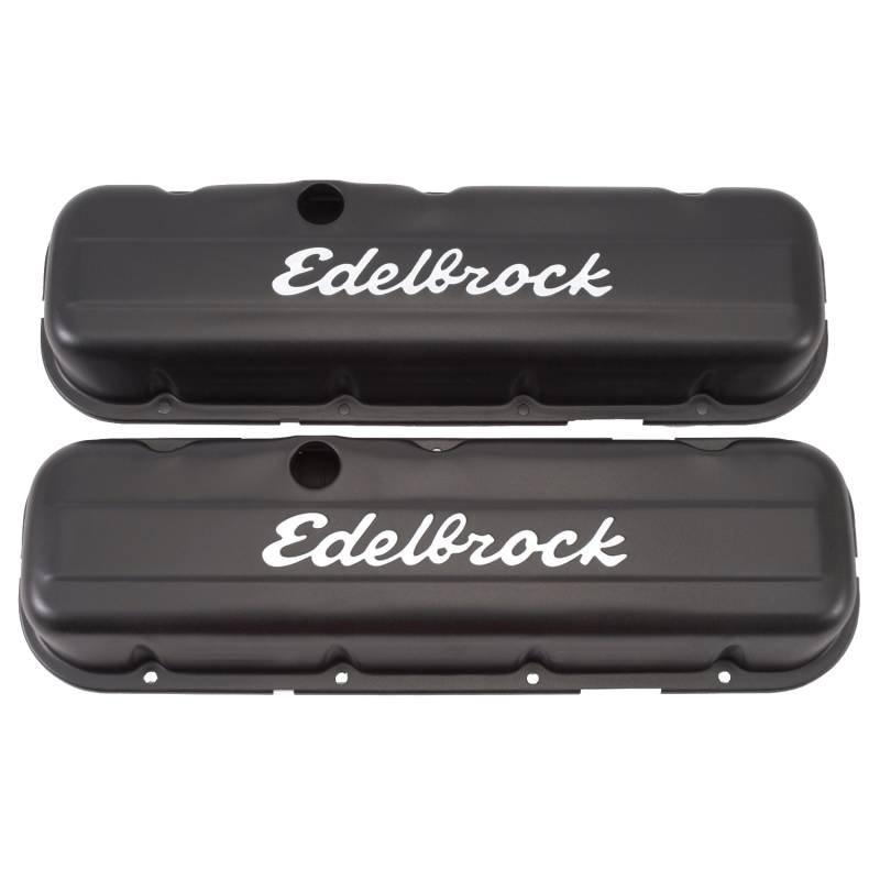Signature Series Valve Covers, Black, Low Profile, Chevrolet 396-502, '65-Later The Edelbrock #4483 Signature Series Valve Covers are designed for Chevrolet 396-502 V8 '65 & later applications. Engineered for function and styled for great looks, Signature Series valve covers have stock-style breather baffles that prevent oil passage to the PCV valve. These quality valve covers accept all emissions equipment, including PCV valve holes. Rubber grommets for the breather and PCV valve holes are included. Matching breathers sold separately.