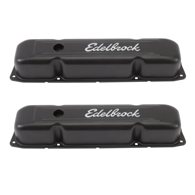 Signature Series Valve Covers for Chrysler 361-383-400-413-426-440 V8 The Edelbrock #4493 Signature Series Valve Covers are designed for Chrysler 361-383-400-413-426-440 V8 '58-79 applications. Engineered for function and styled for great looks, Signature Series valve covers have stock-style breather baffles that prevent oil passage to the PCV valve. These quality valve covers accept all emissions equipment, including PCV valve holes. Rubber grommets for the breather and PCV valve holes are included. Matching breathers sold separately.