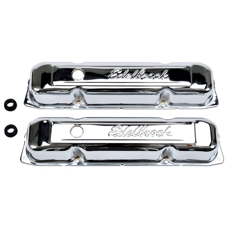 Signature Series Valve Covers for Chrysler 361-383-400-413-426-440 V8 The Edelbrock #4491 Signature Series Valve Covers are designed for Chrysler 361-383-400-413-426-440 V8 '58-79 applications. Engineered for function and styled for great looks, Signature Series valve covers have stock-style breather baffles that prevent oil passage to the PCV valve. These quality valve covers accept all emissions equipment, including PCV valve holes. Rubber grommets for the breather and PCV valve holes are included. Matching breathers sold separately.