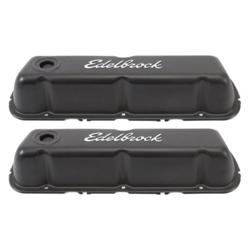 The Edelbrock #4603 Signature Series Valve Covers are designed for Ford 260-289-302 (not Boss) and 351W V8 applications. Engineered for function and styled for great looks, Signature Series valve covers have stock-style breather baffles that prevent oil passage to the PCV valve. These quality valve covers accept all emissions equipment, including PCV valve holes. Rubber grommets for the breather and PCV valve holes are included. Matching breathers sold separately.