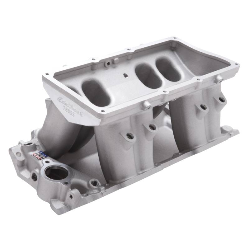 Victor Tunnel Ram 2-R EFI Big Block Chevy Intake Manifold Base Only Edelbrock part #70855 Victor EFI Tunnel Ram base is a modern updated design to our very successful Victor Ram 2-R Tunnel Ram, which was first released over 35 years ago. It's designed for use with 468-582 c.i.d. standard-deck Chevrolet V8 engines with conventional rectangular port cylinder heads. This new and improved design has 7" long runners with close to 5.5 square-inches at the plenum, making it 25% larger than our current Victor Ram 2-R Tunnel Ram base! This is the ideal intake manifold for any modern high horsepower demanding application. Will fit Edelbrock Victor series race cylinder heads #77409, #77459 and #77609.