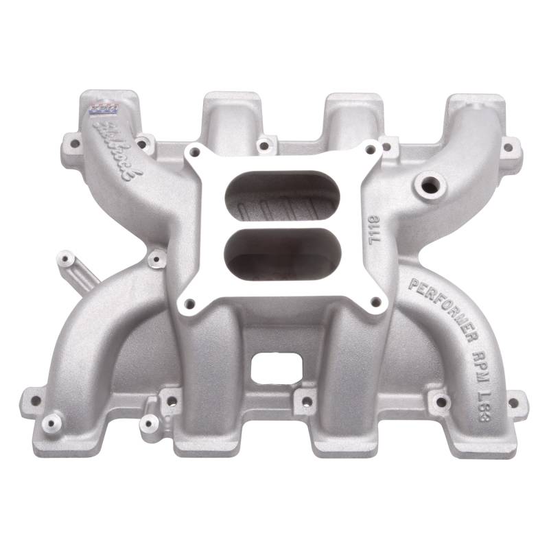 Performer RPM Small Block Chevy LS3 Intake Manifold Only Edelbrock part #71197 Performer RPM LS3 intake manifold is designed for Gen IV engines with LS3, L92 and L76 rectangular port cylinder heads. The Performer RPM LS3 manifold is ideal for anybody looking to build a carbureted LS3 or LS2 engine with an operating range between 1,500 - 6,500 rpm. It allows the use of a carburetor on these originally computer-controlled engines, offering maximum power and a broad torque curve. It features a high-rise dual-plane design combined with a plenum that has been optimized for square-bore carburetors. Performer RPM LS3 includes a provision for mounting an MSD Ignition Timing Control Module #6012 (sold separately), including passages for routing the coil wire harness, for a clean look. A special throttle and trans bracket that works with 700R-4, 200-4R and Turbo 350 transmissions is also included, making this an easy retro-fit into any muscle car, street rod or marine application.