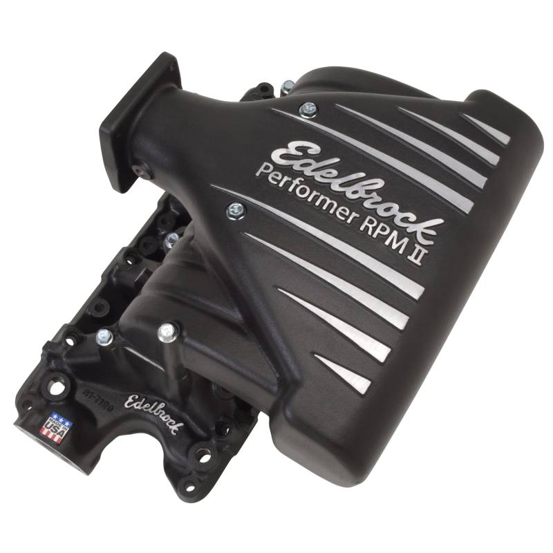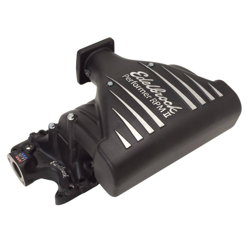 Performer RPM II Intake Manifold #71233 For 5.0L Small-Block Ford, Black Finish Edelbrock part #71233 Performer 5.0 RPM II intake manifold for 1986-95 5.0L Mustang engines has shown significant gains in horsepower over existing designs in the 1500 to 6500 rpm range, and is ideally suited for street and strip applications. This manifold consists of a V-shaped crossover with an increasing cross-sectional area, which passes over to eight large tapered runners. Our 70mm throttle body is recommended (75mm will require port matching). 1994-95 Mustang engines require Throttle Body Adapter #38353 and Adapter Kit #8025. May not fit with stock hood of 1994-95 Mustangs, aftermarket hood recommended. This manifold offers a durable black power coated finish for long lasting protection and a distinctive look.