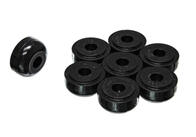Strut Rod Bushing Set These performance polyurethane components help reduce common wheel roll-under. This occurs when stopping abruptly, especially when using performance tires. For both front of rear drive vehicles is so equipped. Replaces that original, short lived and too-soft O.E.M. rubber. On front wheel drive vehicles- diminishes wheel hop and traction loss during standing start accelerations. Better maintains proper alignment under extreme conditions. Made of Energy's Hyper-Flex performance polyurethane to add both performance and durability. Made From HYPER-Flex Polyurethane