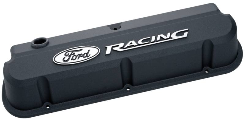 Ford Racing 289-351 Slant Edge Valve Cover Black These Proform Ford Racing Licensed slant edge valve covers are designed to fit directly on your engine with no modifications. They are manufactured from cast aluminum and are available in different finishes to customize the look of your engine bay. The valve covers feature a tall design, so they will clear roller rocker arms and polylock nuts. Proform Ford Racing Licensed slant edge valve covers have raised and milled emblems for a truly unique look and include baffles and grommets. Die Cast Aluminum With Baffle Satin Black Finish Raised Ford Racing Logo Not Designed For Use on Factory 5.0 EFI Intake Manifold Will Clear Stud Girdle And Roller Rocker Arms