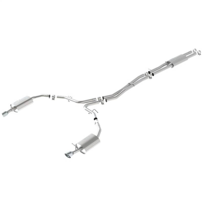 2010-2018 Taurus Sho Cat-Back Touring Exhaust System Do you want to make sure your Ford F-150 sounds as good as it looks? Now you can with this Ford Racing Sport Cat-Back Exhaust for all 2011, 2012, 2013 and 2014 F-150's with a 5.0L Engine and 145 in. Wheelbase. It is uniquely designed and tuned to provide optimum performance, a fiercely aggressive tone, tested durability and pure, high performance driving excitement! This exhaust is constructed from high-quality T-304 stainless steel and features ultra-smooth mandrel bends, warp-free flanges and an all out superior craftsmanship. Exiting the rear of the vehicle are dual, chrome plated 4 in. exhaust tips with 'Ford Racing' embossed on them. This Touring cat-back exhaust is 49-state legal for drive-by noise, so almost everyone can install this system in their F-150 with a 5.0L Engine and a 145 in. wheelbase and rip down the road or path! Bolts To Stock Catalytic Converter Provides An Aggressive Muscle Car Sound Designed And Tuned To Provide Optimum Performance Aggressive Sound Durability
